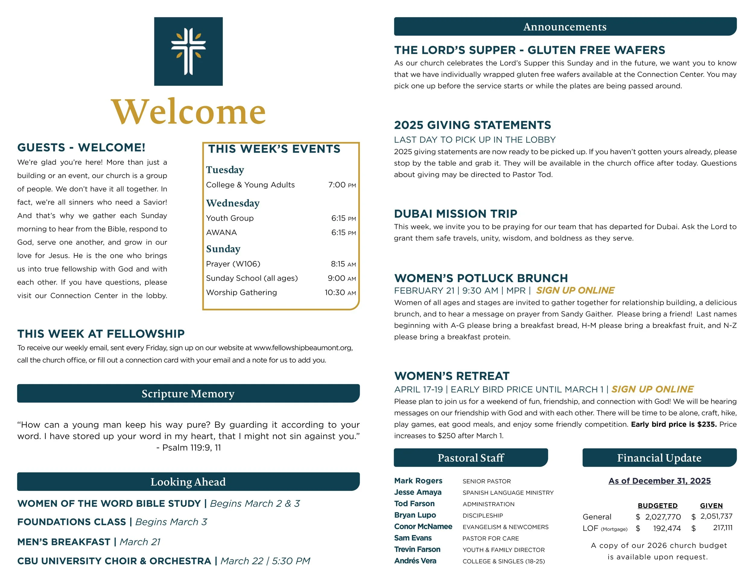 *A copy of our 2026 church budget is available upon request.